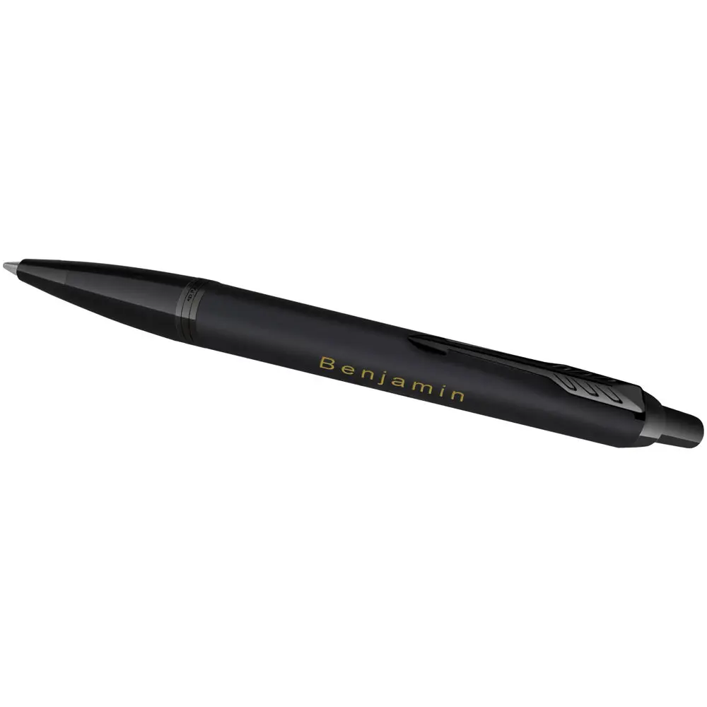 Ontdek de Parker IM achromatische balpen, een verfijnd schrijfinstrument dat perfect aansluit bij uw bedrijfsimago. Met zijn slanke, taps toelopende vorm en innovatief ontwerp maakt deze pen een blijvende indruk. De matte afwerking op de behuizing en de duurzame PVD-coating op de details zorgen voor een professionele uitstraling die lang meegaat.