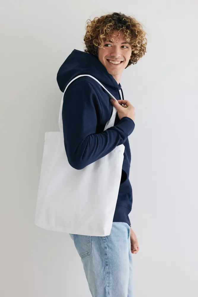 Ontdek onze duurzame draagtas met bodem van 145 gsm gerecycled katoen, ideaal als gepersonaliseerd relatiegeschenk voor uw marketingcampagnes of events. Met een inhoud van 12 liter en een bodem van 6 cm biedt deze tas ruime opslag voor essentials, terwijl u bijdraagt aan een groener imago voor uw bedrijf.