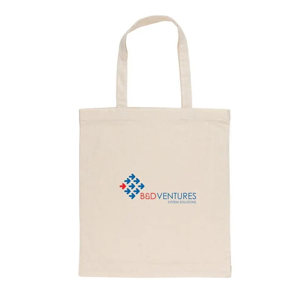 Kies voor een impactvolle manier om uw merk te promoten met deze functionele draagtas van gerecycled katoen. Gemaakt van 70% gerecycled katoen en 30% polyester, biedt deze tas een inhoud van 12 liter en een bodem van 6 cm voor extra opslagruimte. Ideaal voor uw events of als bedankje aan klanten, helpt deze draagtas uw essentials dragen terwijl u bijdraagt aan een groenere toekomst.