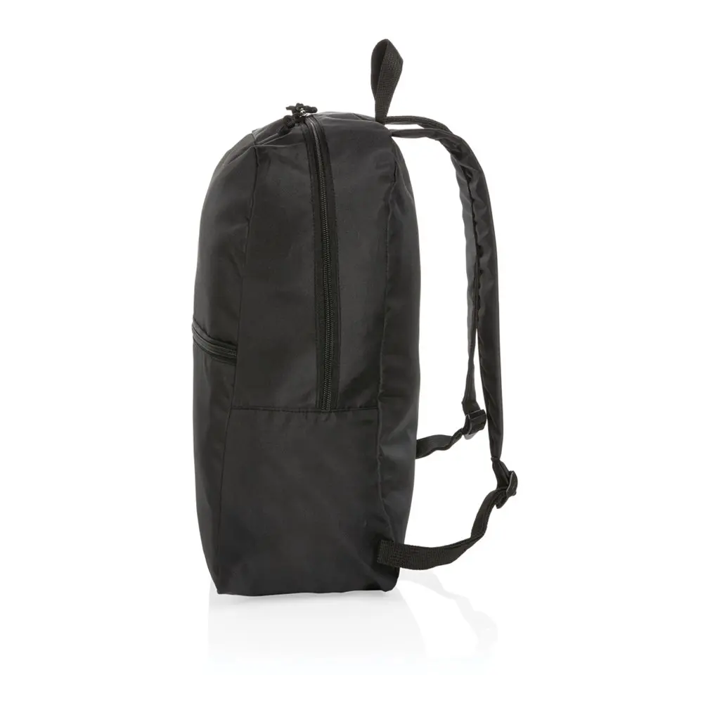 Ontdek hoe deze lichtgewicht rugzak uw relatiegeschenken naar een hoger niveau tilt. Gemaakt van gerecycled PET-materiaal (rPET), biedt deze basic rugzak een eenvoudige en stijlvolle oplossing voor uw marketingacties en events. Met een inhoud van 23 liter past hij perfect bij de essentials van uw doelgroep, terwijl het handige voorvak met ritssluiting zorgt voor optimale organisatie.