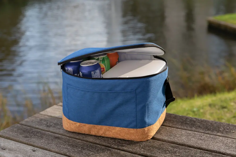 Ontdek onze Impact AWARE™ XL RPET koeltas met kurkdetail, ideaal als gepersonaliseerd relatiegeschenk voor uw marketingacties of events. Deze ruime tas met 12 liter inhoud houdt uw maaltijden, snacks en drankjes fris dankzij de zachte, duurzame isolatie en brede opening. Eenvoudig in te pakken, perfect voor 12 blikjes of een volledige lunch onderweg.