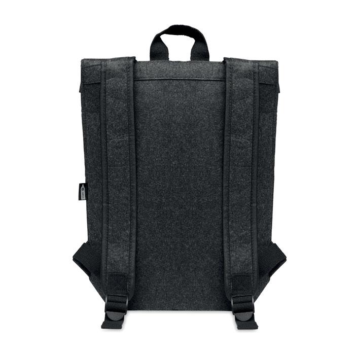 Rugzak van RPET vilt met katoenen sluitband, ritsvak aan de voorkant en een laptopcompartiment.