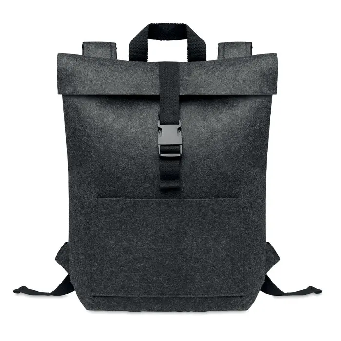 Ontdek onze RPET vilten rugzak, vervaardigd uit gerecycled materiaal voor een milieuvriendelijke keuze. Deze rugzak biedt u een praktische oplossing voor uw marketingacties en events, met ruimte voor personalisatie via logobedrukking.