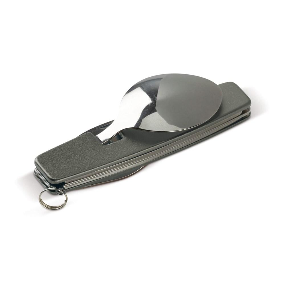 Deze outdoor bestekset is als multi-tool compact, handzaam en eenvoudig. Deze tool bevat een mes, vork, lepel en flesopener.