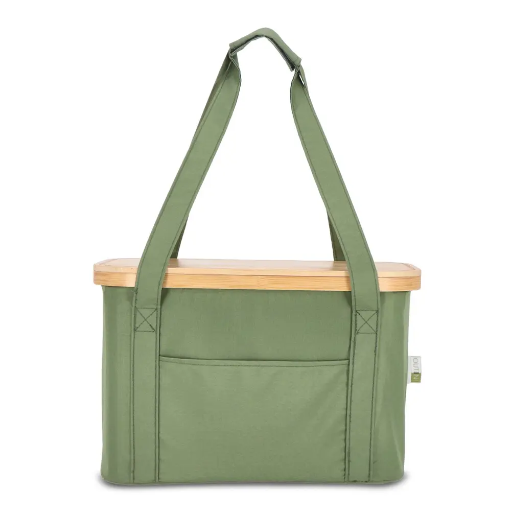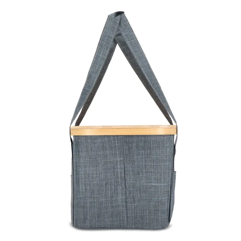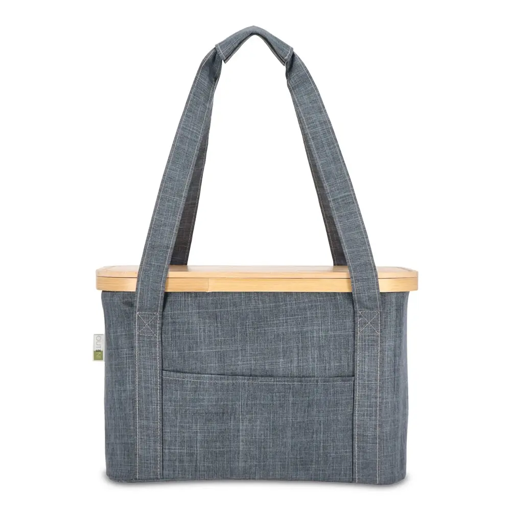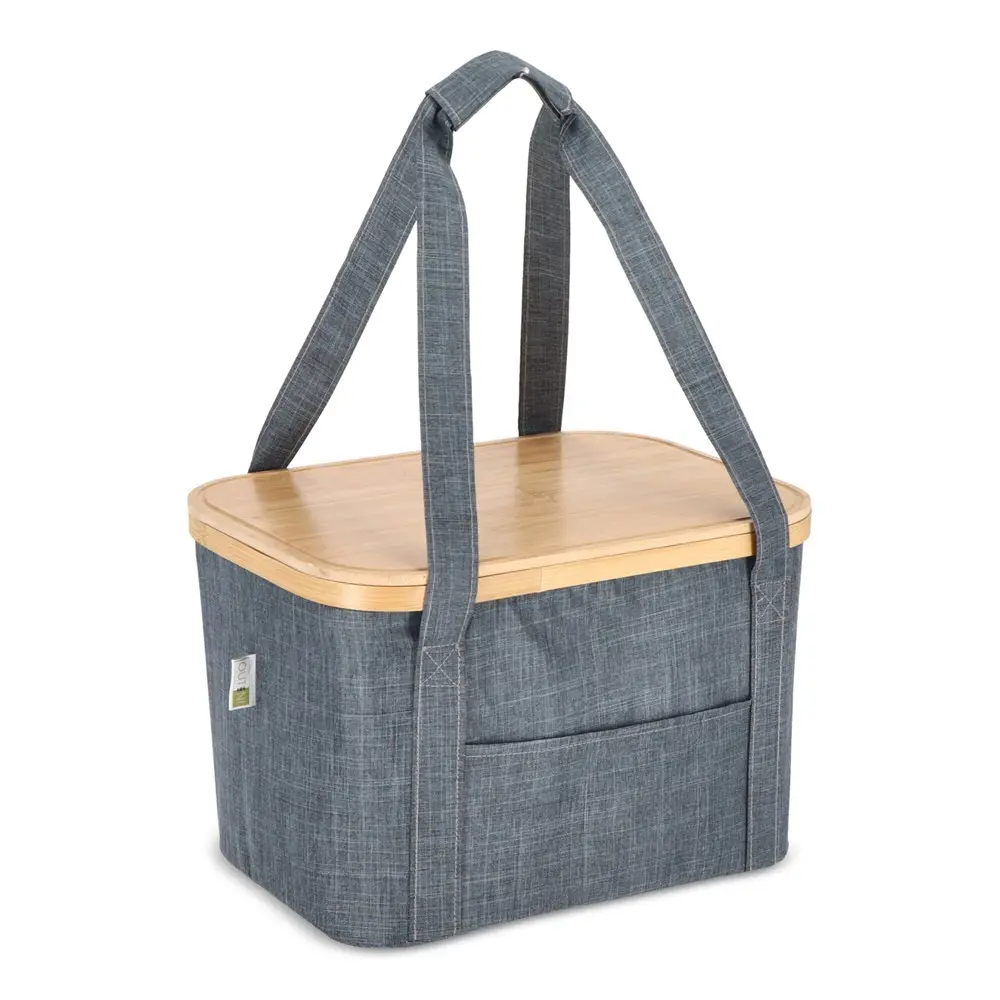 De Sogne combineert stijl en praktisch nut: de geïsoleerde binnentas houdt etenswaren en drankjes koel tijdens outdooractiviteiten, terwijl het bamboe deksel als snijplank dient. Handige voor- en achtervakken bieden extra opbergruimte, en stevige hengels maken transport eenvoudig. Opvouwbaar voor compacte opslag, is deze mand ideaal om uit te delen aan uw klanten als branded giveaway.