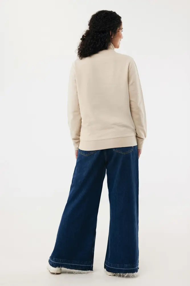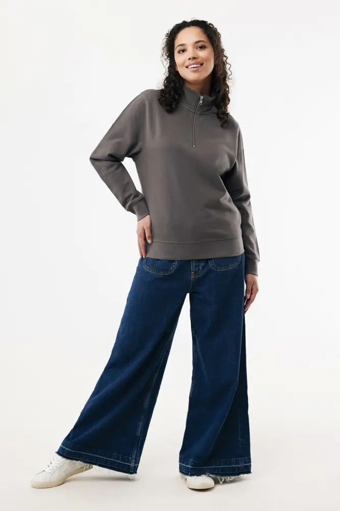 Ontdek deze moderne unisex sweater met kwartritssluiting, perfect voor uw bedrijf als persoonlijk relatiegeschenk. Gemaakt van 100% katoen – 30% gerecycled en 70% biologisch – biedt deze sweater een comfortabele pasvorm en een gewicht van 300 g/m². De French terry binnenkant zorgt voor een zachte touch tegen de huid, ideaal voor dagelijks dragen door uw klanten.