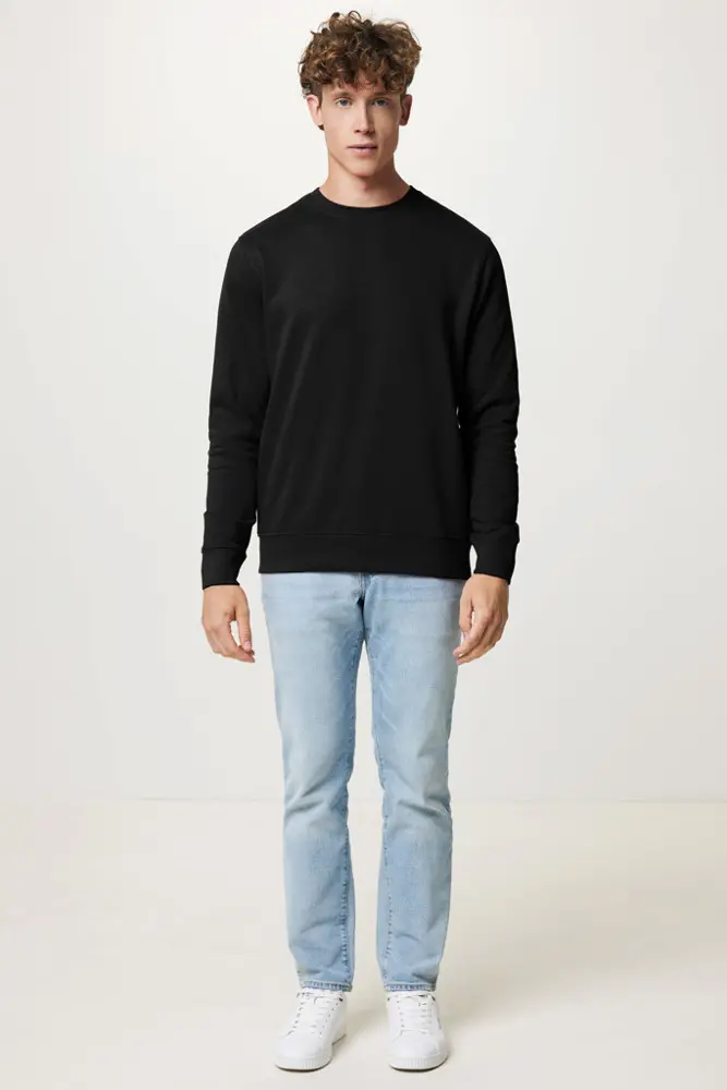 Deze unisex trui biedt een modern fit met ronde hals en lange mouwen. Gemaakt van 100% katoen, waarvan 70% biologisch en 30% gerecycled, met een materiaalgewicht van 280 g/m². De zachte, gebrushte binnenkant zorgt voor optimaal draagcomfort. Het 1x1 ribboord aan de hals en manchetten geeft een strakke afwerking. U kunt de trui personaliseren met uw logo of bedrijfsnaam, ideaal voor relatiegeschenken tijdens events of als promotiemateriaal.