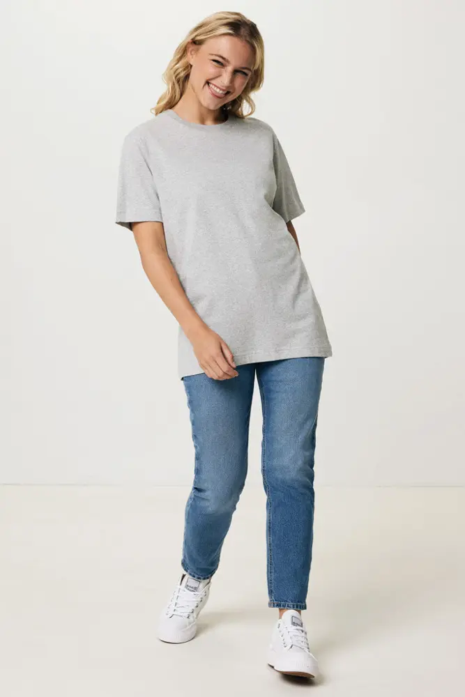 Ontdek ons unisex relaxed fit t-shirt, vervaardigd uit 100% katoen met 50% gerecycled en 50% biologisch materiaal. Met een gewicht van 180 g/m² biedt dit t-shirt een comfortabele pasvorm en een ronde hals met 1x1 ribboord. Het is ideaal als gepersonaliseerd relatiegeschenk met logobedrukking, perfect voor uw marketingacties of events.