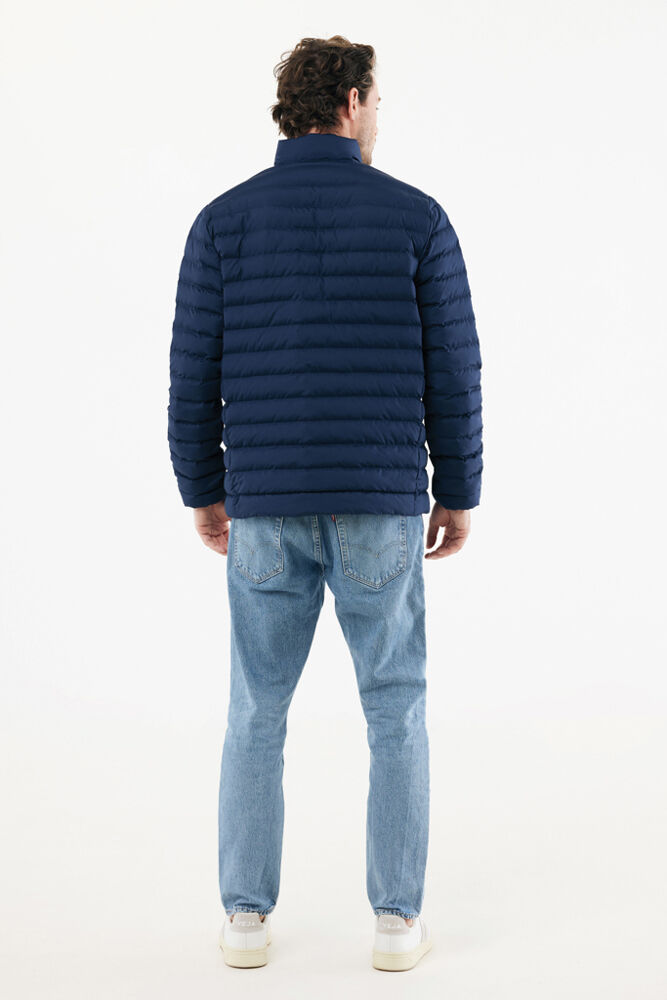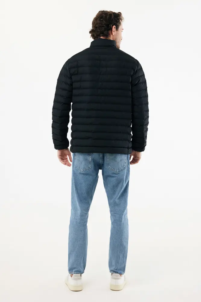 Ontdek deze medium-fit gevoerde jas voor heren, vervaardigd uit 100% gerecycled polyester. De jas is volledig gewatteerd met 100% gerecyclede polyester vulling, wat zorgt voor optimale warmte en comfort tijdens koude dagen. Aan de voorzijde vindt u een omgekeerde ritssluiting, terwijl de zijpanelen handige zakken met ritssluiting bieden voor uw essentials. Alle ritsen zijn uitgerust met extra ritstrekker in dezelfde kleur voor een elegante afwerking. De manchetten beschikken over een elastische boord, en de binnennaden zijn zorgvuldig afgewerkt met gerecyclede band. Dankzij de fluorine/PFAS-vrije waterafstotende impregnering blijft u droog bij lichte regenval. De kraag zorgt voor extra bescherming rond de nek.