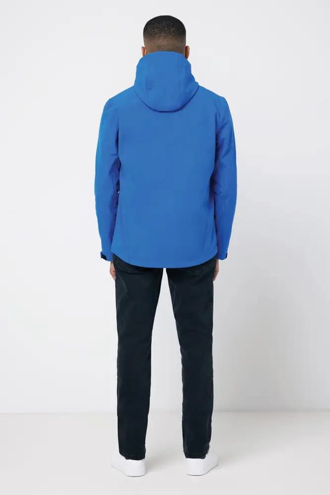 De IQONIQ Makalu heren softshell jas biedt uw merk een duurzame en stijlvolle uitstraling. Gemaakt van 91% gerecycled polyester met een 3-laags structuur van 300 g/m², inclusief een TPU-membraan, is deze medium-fit jas waterafstotend tot 5000 mm, winddicht en ademend tot 3000 g/m²/24u. De verstelbare capuchon, mouwboorden met klittenband en praktische ritszakken zorgen voor optimaal comfort tijdens events of outdoor activiteiten.