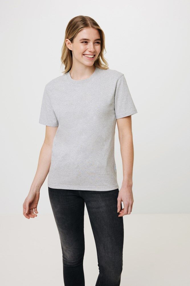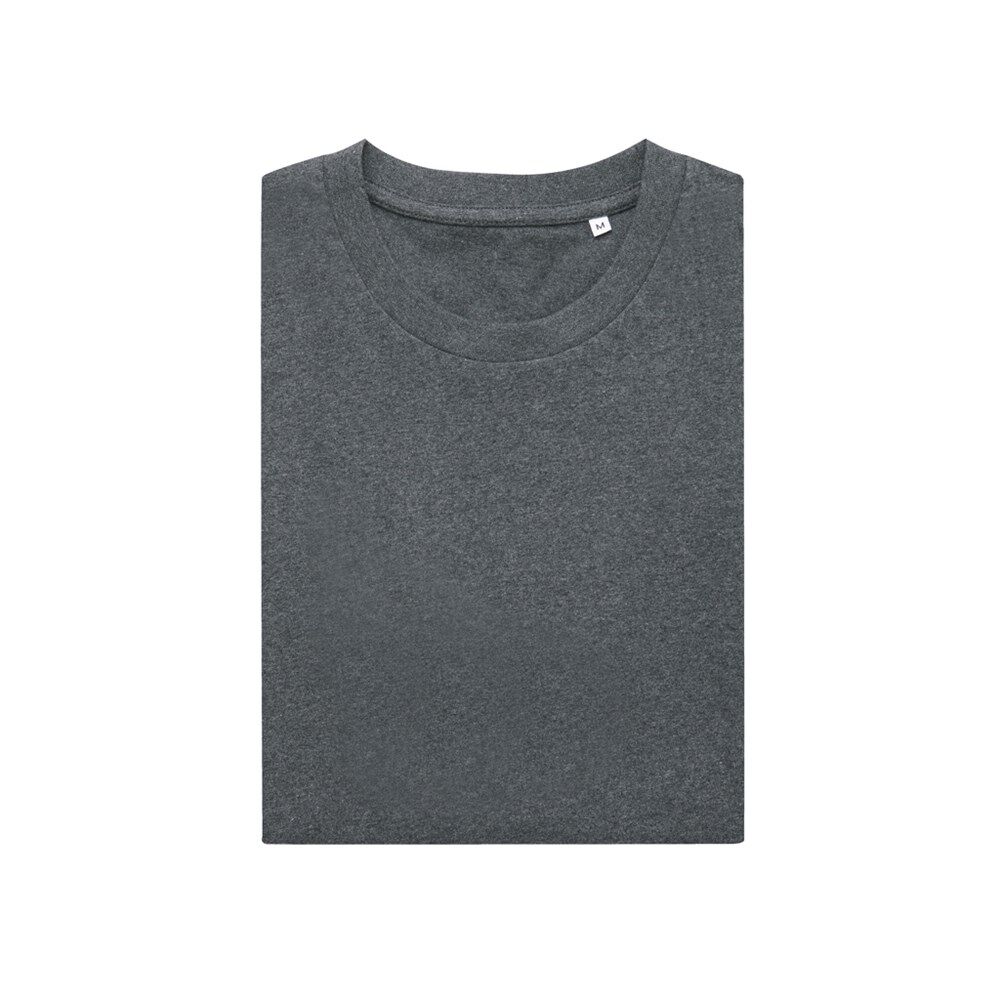 Dit t-shirt bestaat uit 100% katoen, met 50% gerecycled en 50% biologisch katoen, met een gewicht van 180 g/m². Door het mengen van gerecycled katoen met nieuw biologisch katoen ontstaat een natuurlijk gemêleerd effect, zonder verfproces. Dit vermindert de milieu-impact aanzienlijk en ondersteunt uw groene imago.