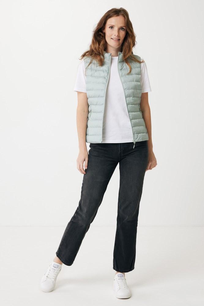 Ontdek de IQONIQ Meru dames polyester bodywarmer met medium fit, perfect als gepersonaliseerd relatiegeschenk met jouw logo. Gemaakt van 100% gerecycled polyester en volledig gewatteerd met gerecyclede vulling, biedt deze bodywarmer optimale warmte zonder beperkende mouwen, ideaal voor events of als promo bij koude dagen.