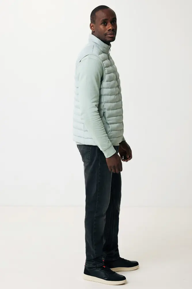 De IQONIQ Meru heren bodywarmer in medium fit biedt uw bedrijf een stijlvol en duurzaam relatiegeschenk. Gemaakt van 100% gerecycled polyester met gewatteerde vulling van hetzelfde materiaal, zorgt deze bodywarmer voor comfort en een professioneel uiterlijk tijdens events of als reclame. De omgekeerde spiraalrits en praktische ritszakken in de zijnaden verhogen het gebruiksgemak, terwijl extra ritstrekkers een verfijnde afwerking geven. Armsgaten met bandelastiek en netjes afgewerkte binnennaden garanderen draagcomfort.