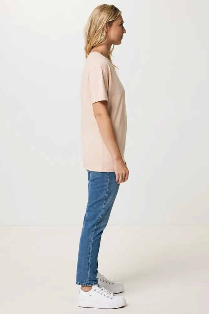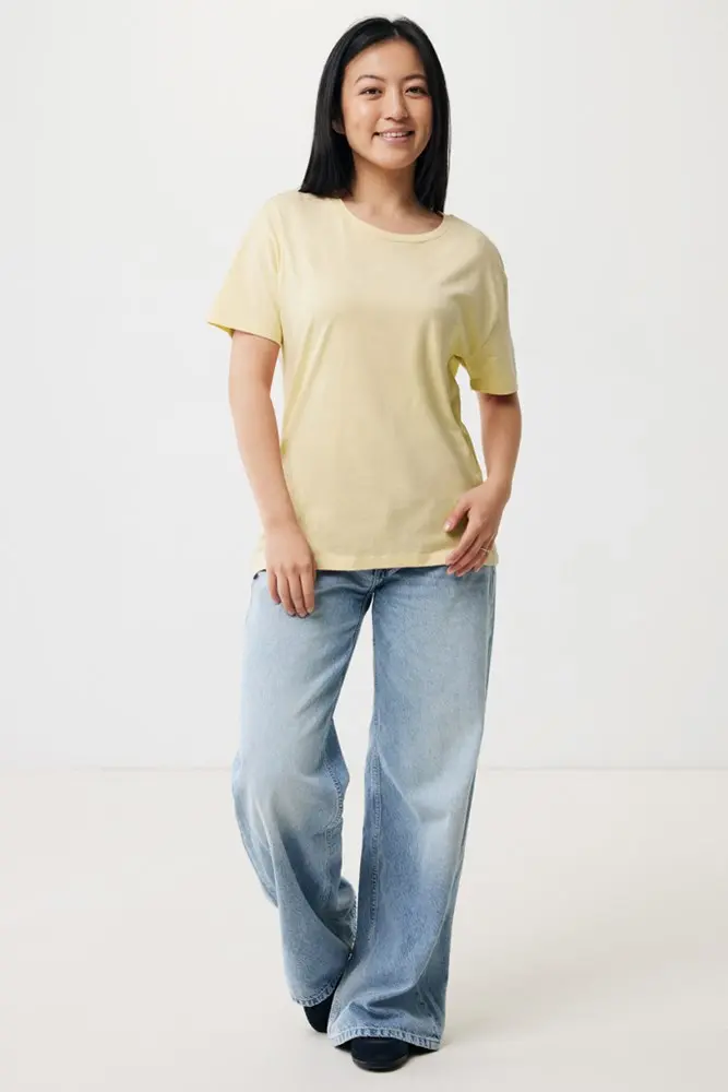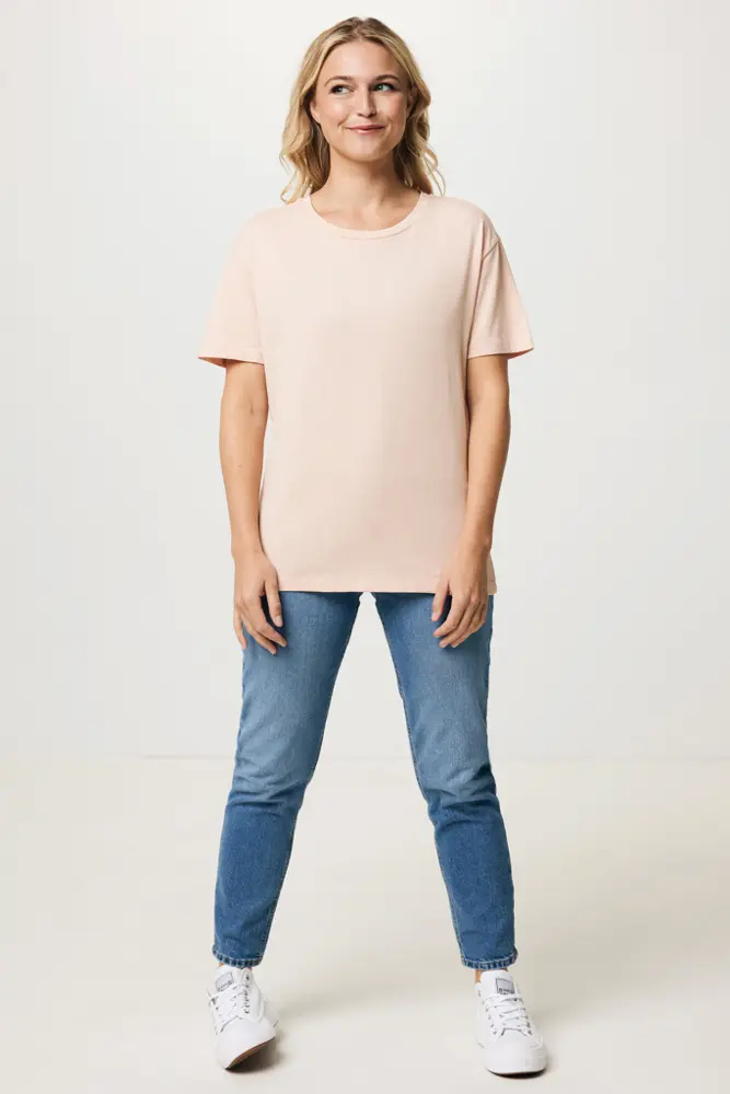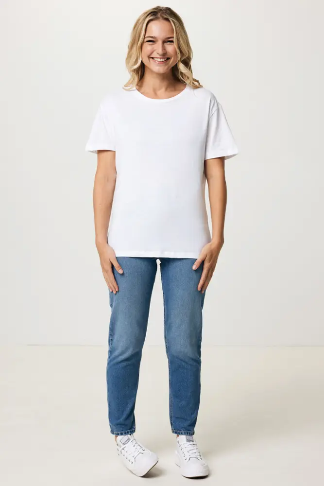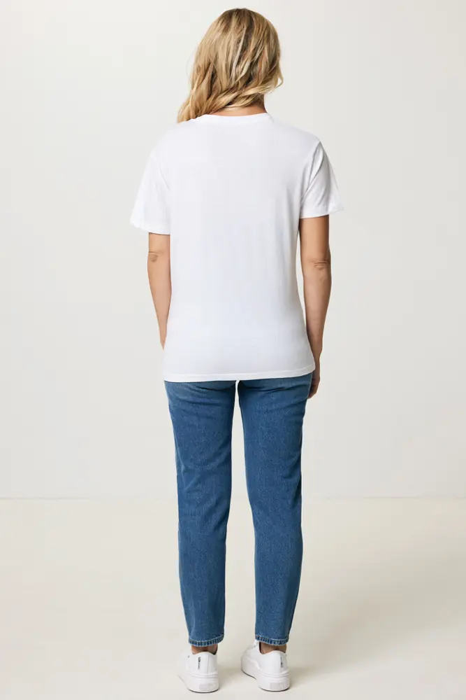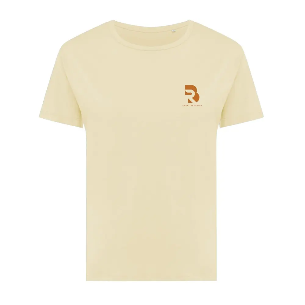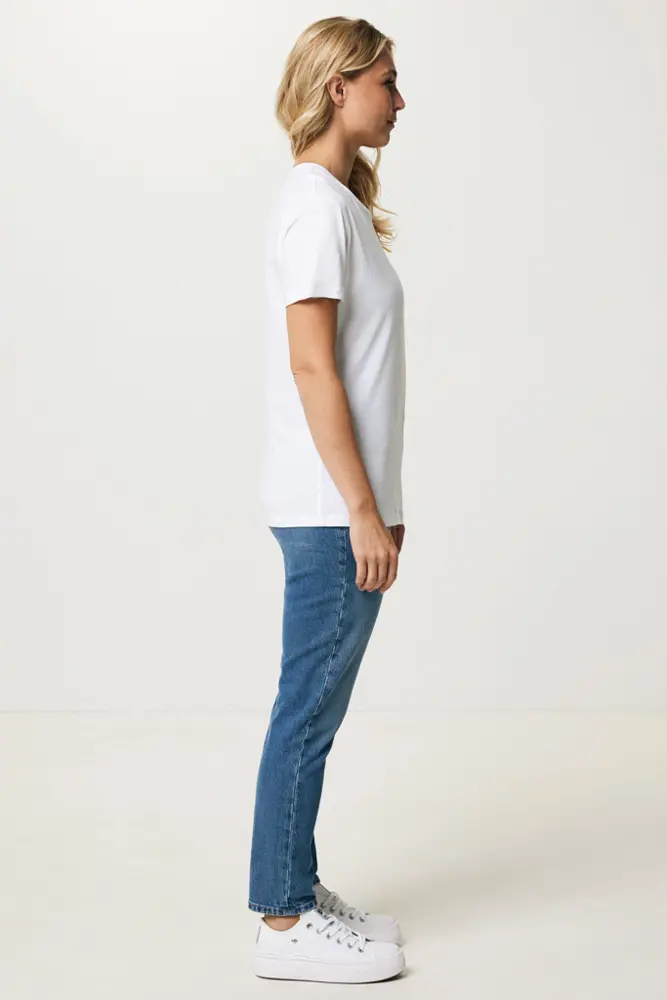 Ontdek het IQONIQ Yala dames lichtgewicht t-shirt, perfect als gepersonaliseerd relatiegeschenk met uw logo. Dit modern fit shirt van 100% katoen – 70% biologisch en 30% gerecycled – biedt u een comfortabele drager van 160 g/m² met ronde hals van hetzelfde materiaal. Dankzij AWARE™-technologie met blockchain en QR-code traceert u de duurzame impact eenvoudig, terwijl 2% van de opbrengst naar Water.org gaat. OEKO-TEX® STANDARD 100 gecertificeerd, voldoet het aan strenge normen voor AZO-kleurstoffen, formaldehyde en PCP. Kleine variaties door gerecycled materiaal onderstrepen de authenticiteit. Personaliseer het voor uw events om uw merk duurzaam te promoten en relaties te versterken.