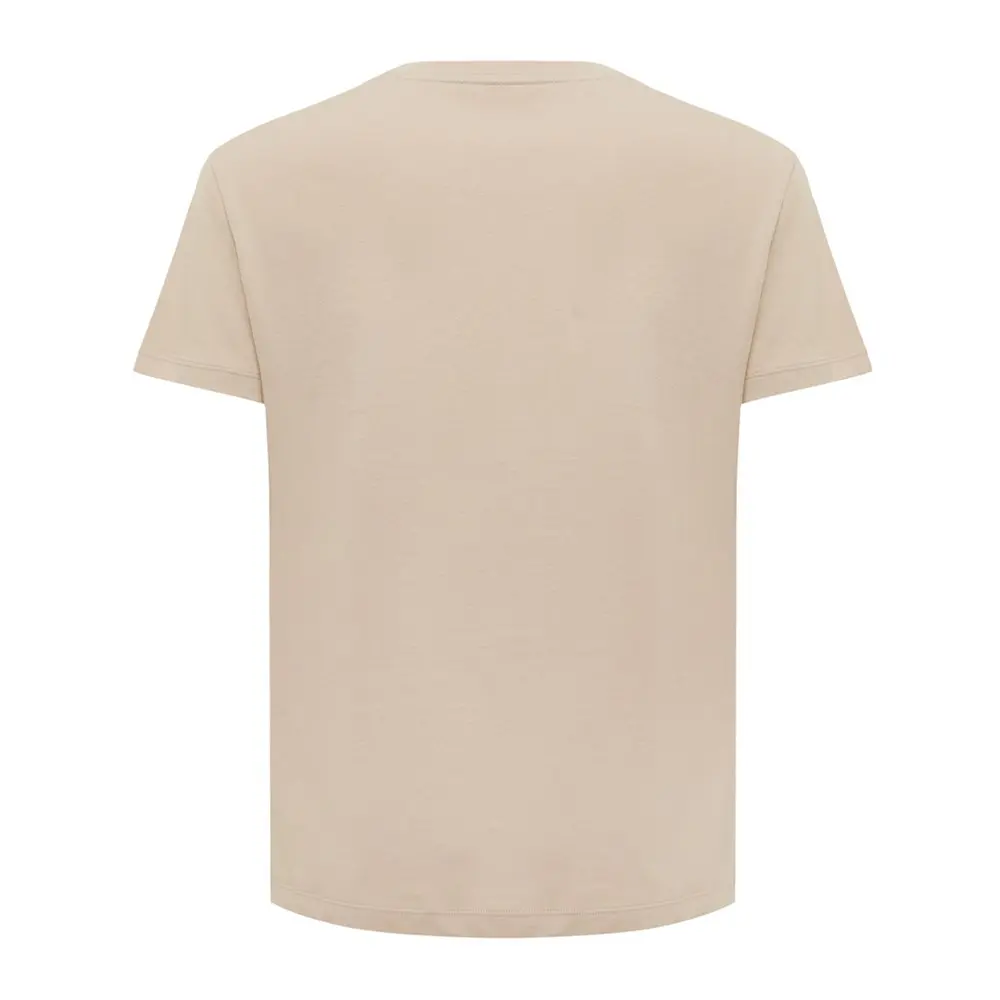 Gemaakt van 100% katoen, waarvan 70% biologisch en 30% gerecycled, met een gewicht van 160 g/m². De ronde halslijn is vervaardigd uit hetzelfde materiaal voor een naadloos en aangenaam gevoel op de huid. De modern fit zorgt voor een flatterende silhout, geschikt voor diverse gelegenheden. Door het gerecyclede materiaal kunnen lichte variaties in textuur optreden, wat bijdraagt aan de unieke, authentieke uitstraling.