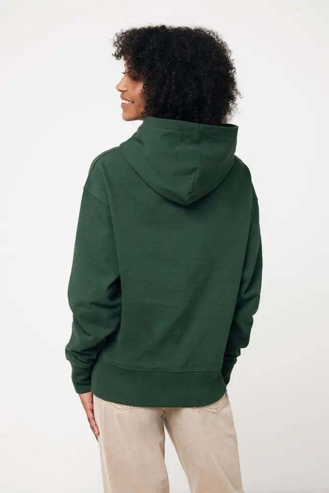 Gemaakt van 100% katoen, met 50% gerecycled en 50% biologisch materiaal, weegt de hoodie 340 g/m² voor een stevige yet lichte feel. De verlaagde schoudernaden, wijdere mouwen en dubbellaagse capuchon met 2x2 rib bieden een ontspannen silhouet. De gebrushte binnenkant garandeert extra zachtheid, perfect voor dagelijks gebruik door uw ontvangers.