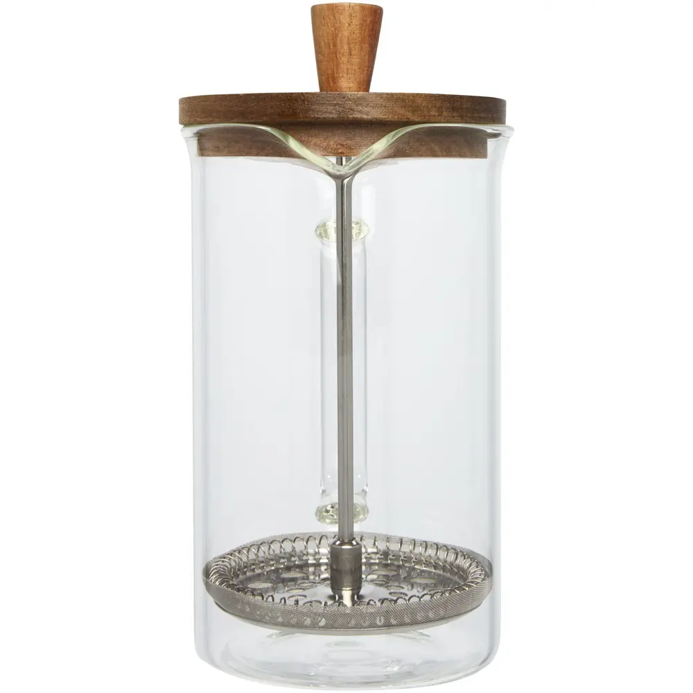 Het borosilicaatglas zorgt voor een aantrekkelijke uitstraling in uw keuken en maakt de pers ideaal voor avonturen en uitstapjes. De afmetingen bedragen 13 x 18 x Ø 9 cm, met een diameter van 90 mm. Gemaakt van acaciahout, borosilicaatglas en roestvrij staal, geleverd in een individuele geschenkverpakking.