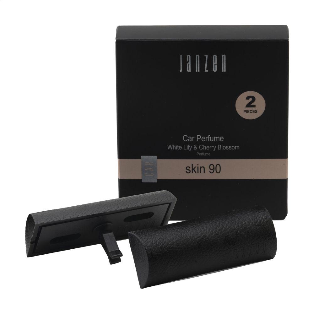 Autoparfum in de geur Skin 90 van het merk JANZEN. Met deze autoparfum ben je zelfs onderweg omringd met jouw gevoel van thuiskomen. De geur gaat 35 tot 45 dagen mee en wordt verspreid door de luchtstroom uit het ventilatiesysteem van je auto. De verpakking bevat 2 stuks. Opgewekt en vrolijk, dat is Skin 90. De kersenbloesem heeft in Japan een haast heilige status. Met haar lichtroze blaadjes en aangename geur is de boom een waar feest voor de zintuigen. Het subtiele van de kersenbloesem wordt in dit parfum afgewisseld met het frisse van de lelie en krachtige van de tonkaboon. Per set in een geschenkdoos. Per set in doos.