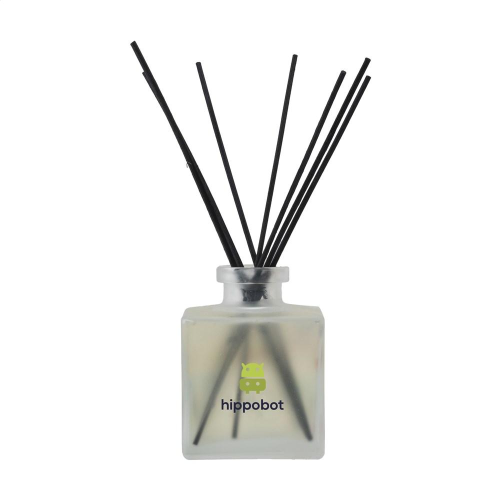 De glazen flacon met 200 ml parfumolie komt inclusief stokjes en verpakt in een luxe geschenkdoos. Personaliseer met je logo voor optimale merkpromotie op events of als give-away. Zo versterk je je relaties en zorg je voor langdurige naamsbekendheid – een slimme investering voor marketing en events!