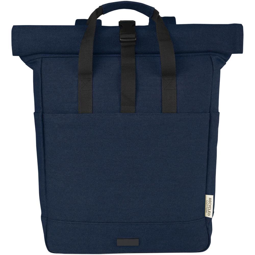 De Joey retail-geïnspireerde rolltop rugzak is samengesteld uit GRS gerecycled canvas en GRS RPET voering. Deze rugzak beschikt over een speciale sleeve voor een tablet en een gevoerd compartiment voor een 15" laptop. Daarnaast heeft de rugzak 2 zijvakjes voor waterflessen en een grote ritszak aan de voorkant, evenals een ritsopening met rolltop voor maximale opslag en veiligheid. De 2 versterkte webbing-handvatten maken het gemakkelijk en comfortabel om de rugzak als een zakelijke draagtas mee te nemen. De decoratieve metalen plaat zorgt ervoor dat een logo mooi tot zijn recht komt door zijn subtiele en matte afwerking.