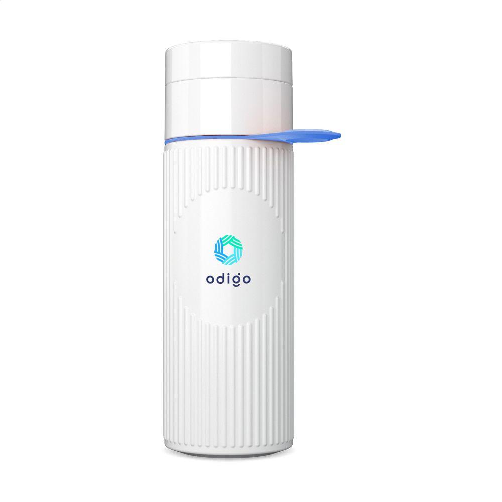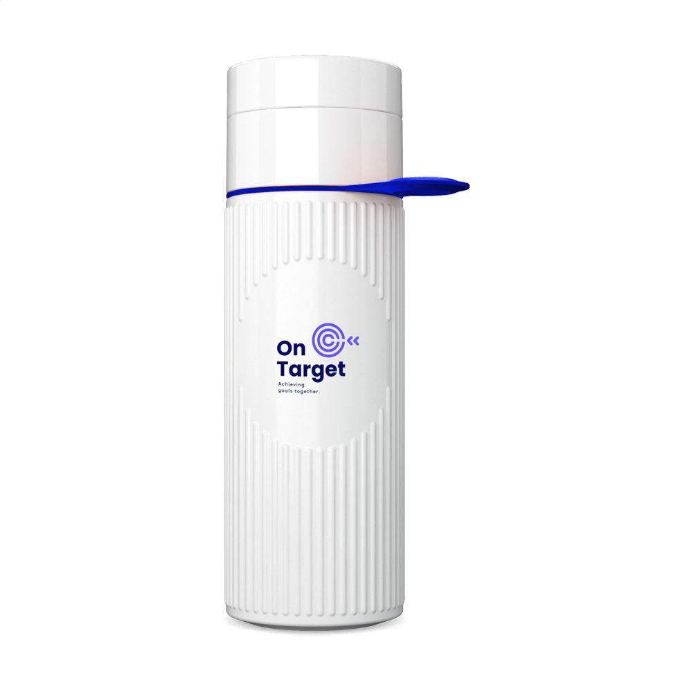 Herbruikbare waterfles van het merk Join The Pipe. Deze duurzame fles is gemaakt van Bio HDPE. Deze kunststof wordt gemaakt van het afval van de suikerrietplant. Het fraaie 3D ribbelpatroon geeft de fles een opvallend fraaie uitstraling. De fles heeft 2 openingen met schroefdop: een drinkopening en een royale opening voor het gemakkelijk schoonmaken van de fles of het toevoegen van ijsblokjes. Met handige, rubberen draaglus. Lekvrij. Vaatwasserbestendig tot 65°C. Voor behoud van de opdruk wordt met de hand afwassen aanbevolen. Inhoud 500 ml. Made in Holland.