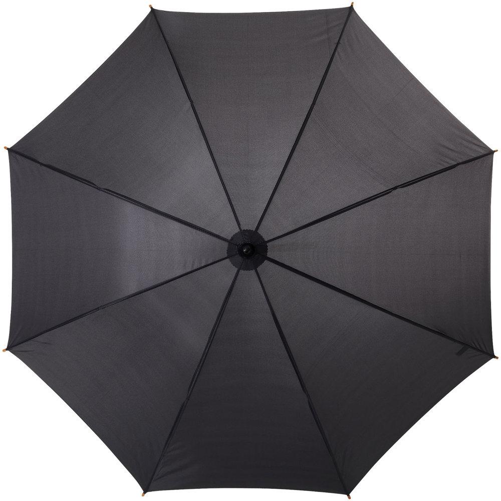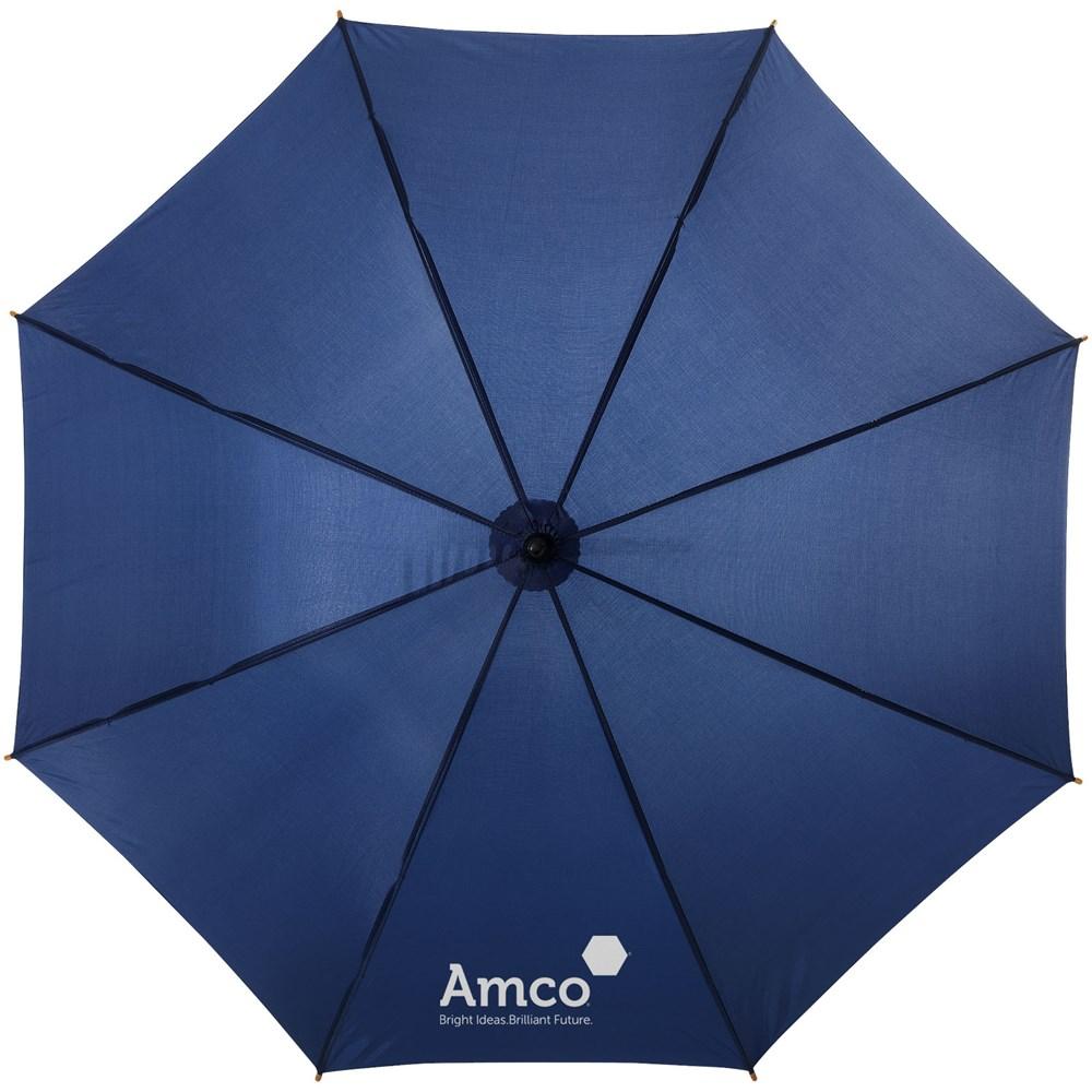 23" paraplu met houten handvat, houten schacht en metalen baleinen.