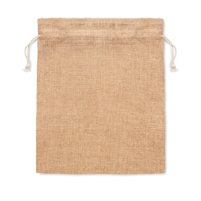 Ontdek onze kleine jute geschenkzak met trekkoordsluiting, perfect voor het verpakken van relatiegeschenken. Met afmetingen van circa 14 x 22 cm biedt deze zak een compacte oplossing voor uw marketingacties.