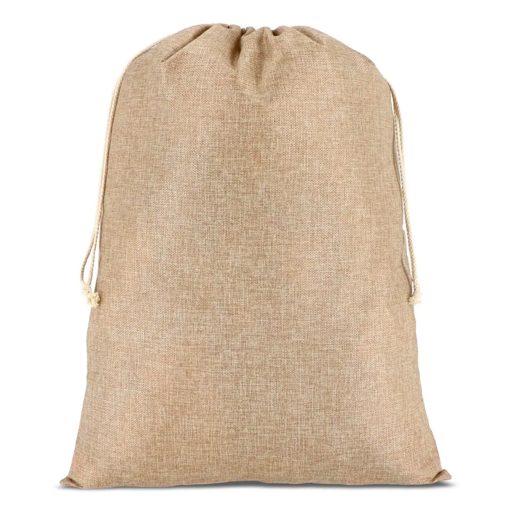 Ontdek de veelzijdige jute-stijl geschenktas met koord, ideaal voor het verpakken van uw relatiegeschenken. Met afmetingen van 50 x 70 cm biedt deze tas voldoende ruimte voor grotere items, zodat u uw cadeaus professioneel kunt presenteren tijdens events of als merkpromotie.