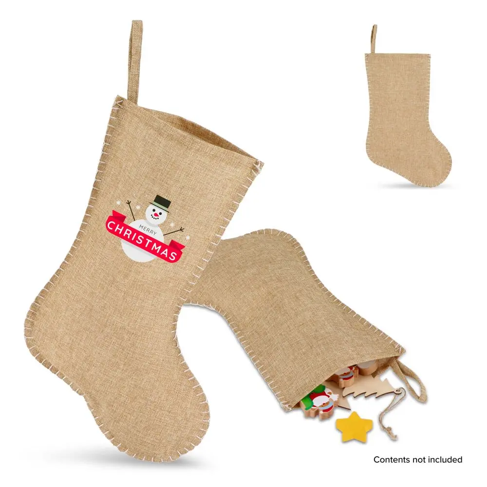 Ontdek onze jute-stijl kerstsok met decoratieve stiksels van 40 cm, perfect als gepersonaliseerd relatiegeschenk voor uw bedrijf. Deze rustieke sok straalt warmte en authenticiteit uit, ideaal voor marketingacties of events. Met logobedrukking voegt u uw merk toe, zodat uw klanten een blijvende indruk krijgen van uw organisatie.