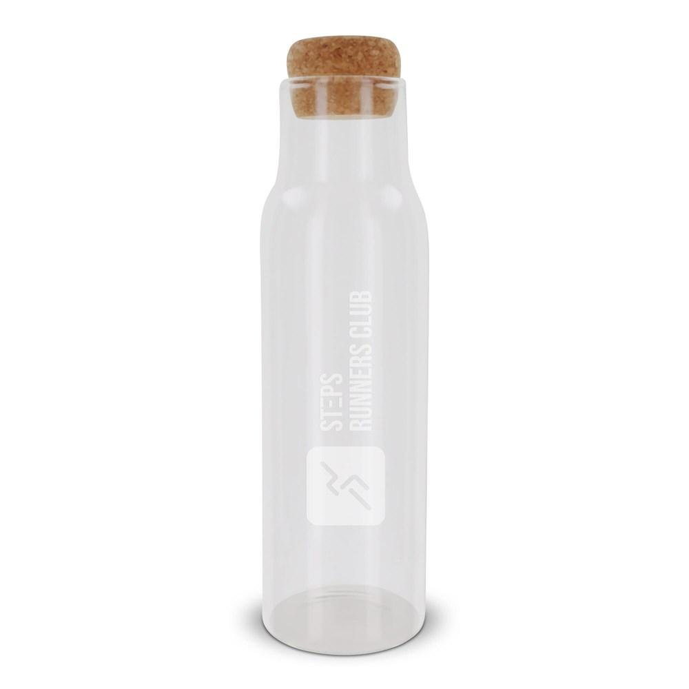 Fles van borosilicaatglas met een deksel van kurk. De combinatie van glas en kurk geeft de karaf een natuurlijke uitstraling. Serveer water, sappen of andere (koolzuurhoudende) dranken in deze fles. Dankzij de sluiting met deksel kan deze fles ook zonder problemen op het terras worden gebruikt.