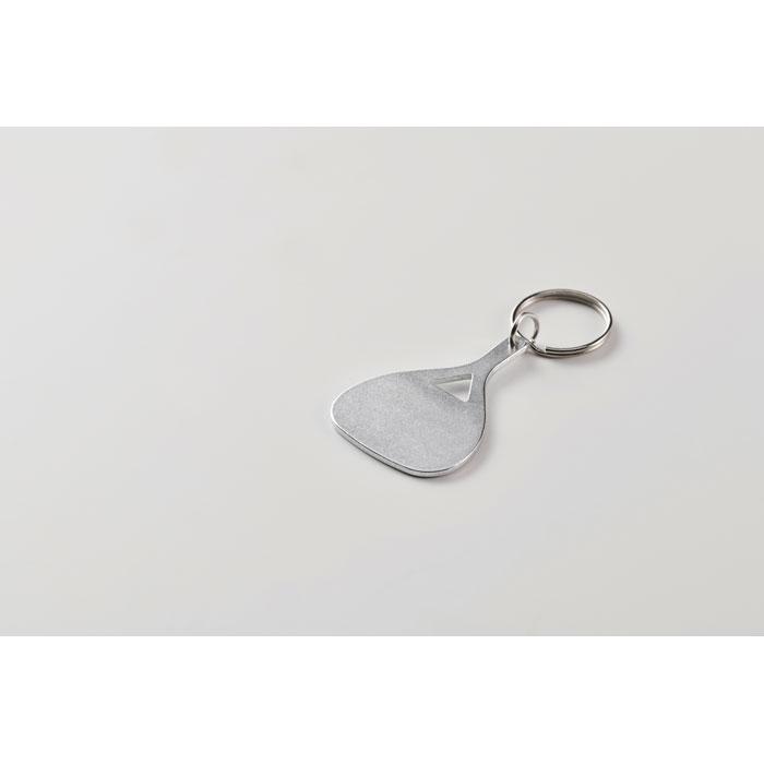 Ontdek deze unieke alu sleutelhanger in peddelvorm, gemaakt van gerecycled aluminium met een stevige ijzeren ring. Perfect om te personaliseren met jouw logo voor maximale zichtbaarheid bij jouw klanten.