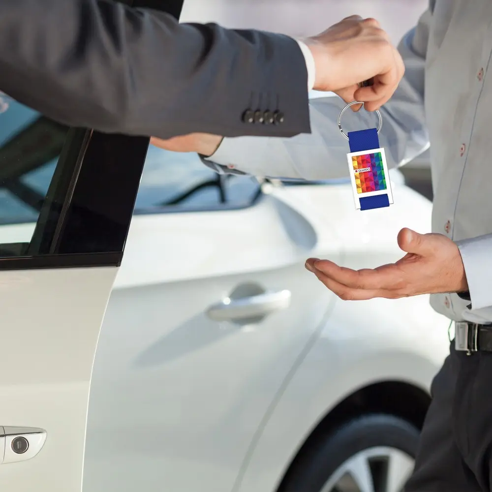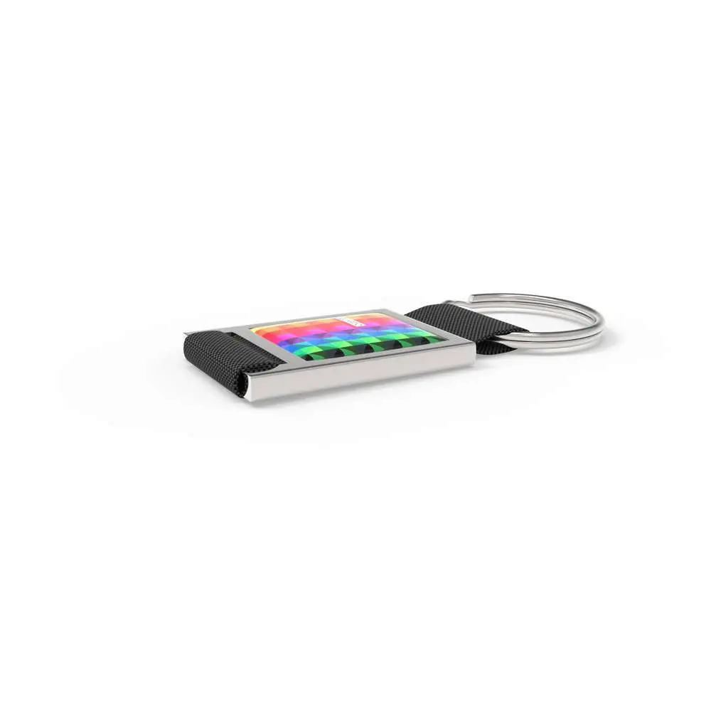 De Key Ring Quadro biedt een slimme fusie van metaal en textiel in een compacte sleutelhanger. Dit relationeel geschenk is ideaal voor uw merkpromotie en kan volledig op maat worden gemaakt met full colour doming.