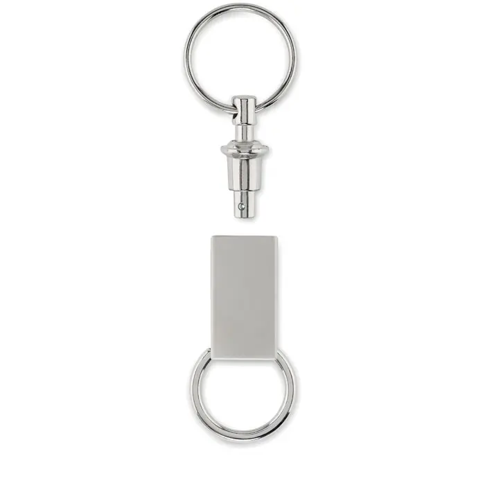 Ontdek deze innovatieve 2-in-1 sleutelhanger, vervaardigd uit duurzame zinklegering. Door de sleutelhanger eenvoudig uit elkaar te trekken, verkrijgt u twee afzonderlijke sleutelhangers. Dit veelzijdige ontwerp biedt flexibiliteit en gemak voor dagelijks gebruik, ideaal voor uw klanten en relaties.