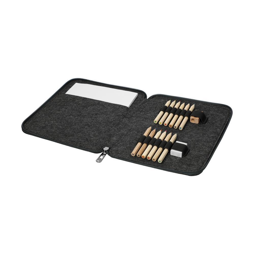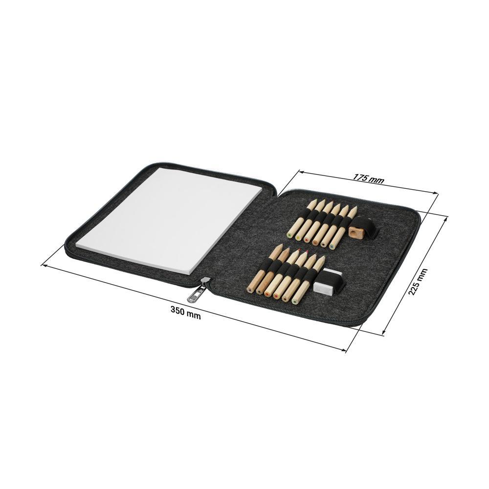De kindertekenmap "Fantasia" is het perfecte gepersonaliseerde relatiegeschenk voor jouw marketingacties of events. Gemaakt van stevig vilt in formaat 22 x 17 cm, biedt het ruime opbergplaats voor al je tekenmaterialen. De set bevat een handig tekenblok, kleine potloden, een gum en een puntenslijper, zodat jonge creatievelingen meteen aan de slag kunnen.