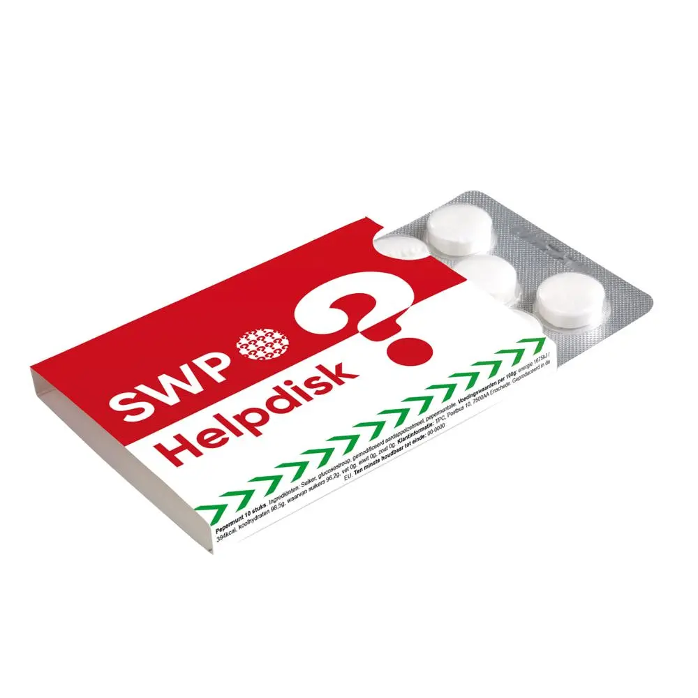 Ontdek ons blister met 10 mini pepermuntjes, voorzien van een full colour bedrukte sleeve. Dit handige relatiegeschenk is ideaal voor uw bedrijf om een blijvende indruk te maken bij klanten en relaties.