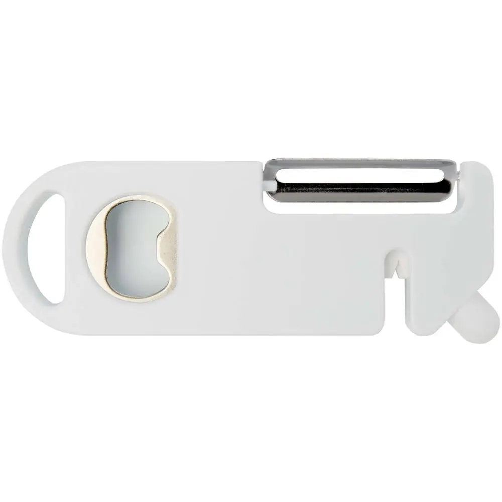 Ontdek dit praktische keukengereedschap dat vier essentiële functies bundelt in een compact ontwerp. Gemaakt van hoogwaardig gerecycled materiaal, biedt het een dunschiller, flesopener, messenslijper en een puntig uiteinde om moeiteloos aardappeloogjes te verwijderen. Met een ingebouwd ophanggat hangt u het eenvoudig op, wat ruimte bespaart in elke keuken.