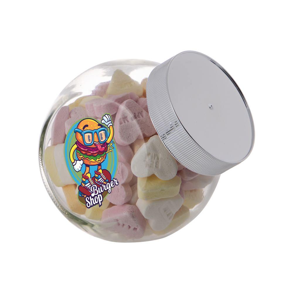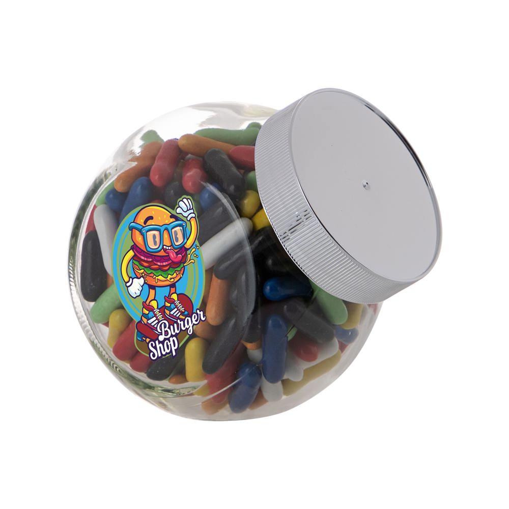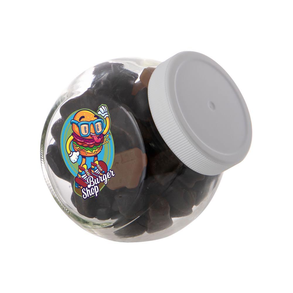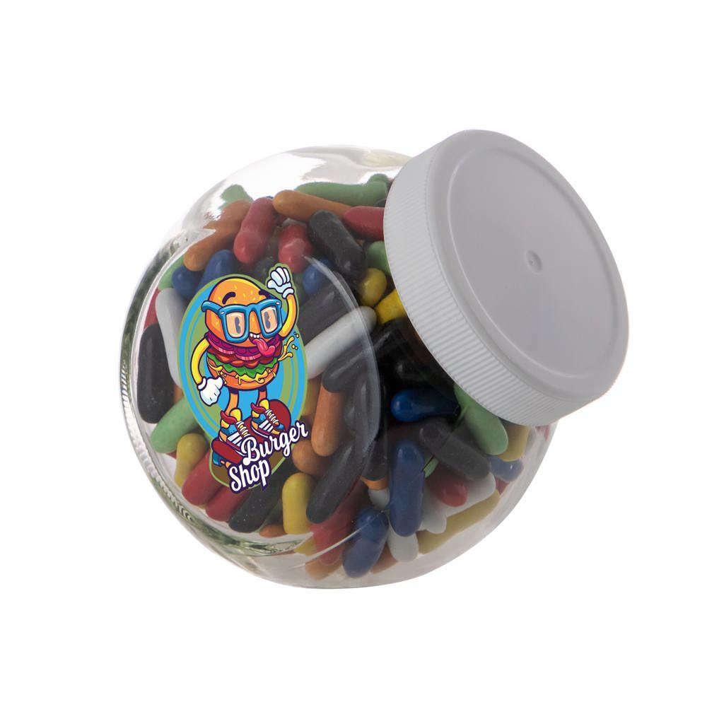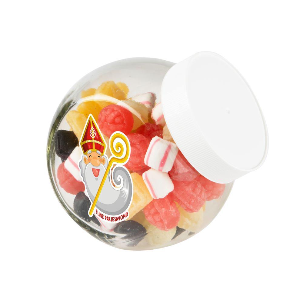 Klein glazen potje 0,4 liter, gevuld met snoep