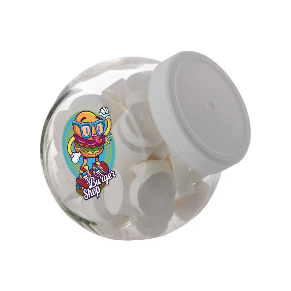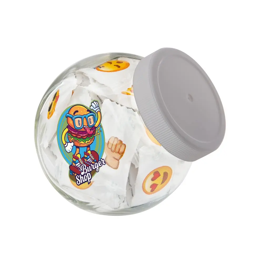 Gemaakt van hoogwaardig glas, biedt dit potje niet alleen een stijlvolle presentatie, maar is het ook herbruikbaar, wat bijdraagt aan duurzaamheid. De vulling zorgt voor een smakelijke verrassing die uw boodschap versterkt. Perfect voor bulkbestellingen, helpt het uw zichtbaarheid te vergroten en klantrelaties te versterken. Bestel nu en til uw promotie naar een hoger niveau.