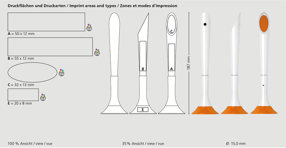 De Deskpen matt is een Staande balpen. Materialen en oppervlakken: Voet, houder, schacht en stop: Kunststof (ABS) mat. Standaard kleuren: Voet, houder, schacht en stop: te combineren uit 9 kleuren. : vanaf 5000 stuks; vanaf 25.000 stuks zonder PMS-toeslag. Standaard vulling: Silktech XL (5 000 m), blauw of zwart, vulling optioneel: Multifill P.