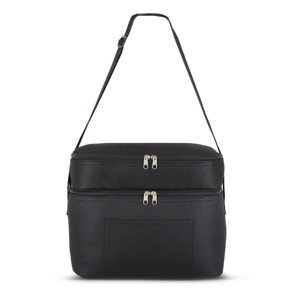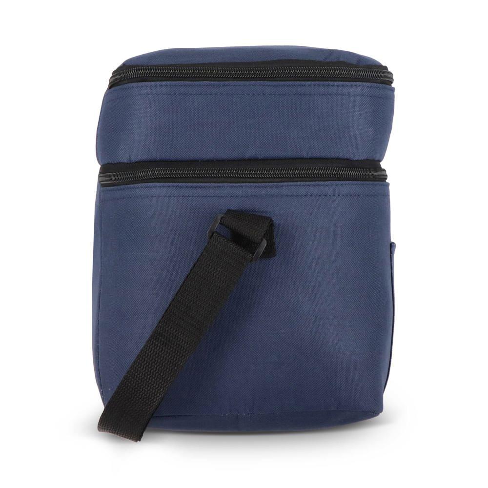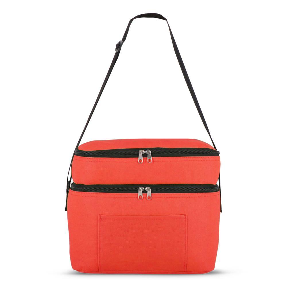 12L Koeltas gemaakt van duurzaam gerecycled PET 600D. Ontwerp met twee compartimenten voor het georganiseerd houden van voedsel. Voorzien van een aluminiumfolie voering en een voorvak. Praktisch en ruim.