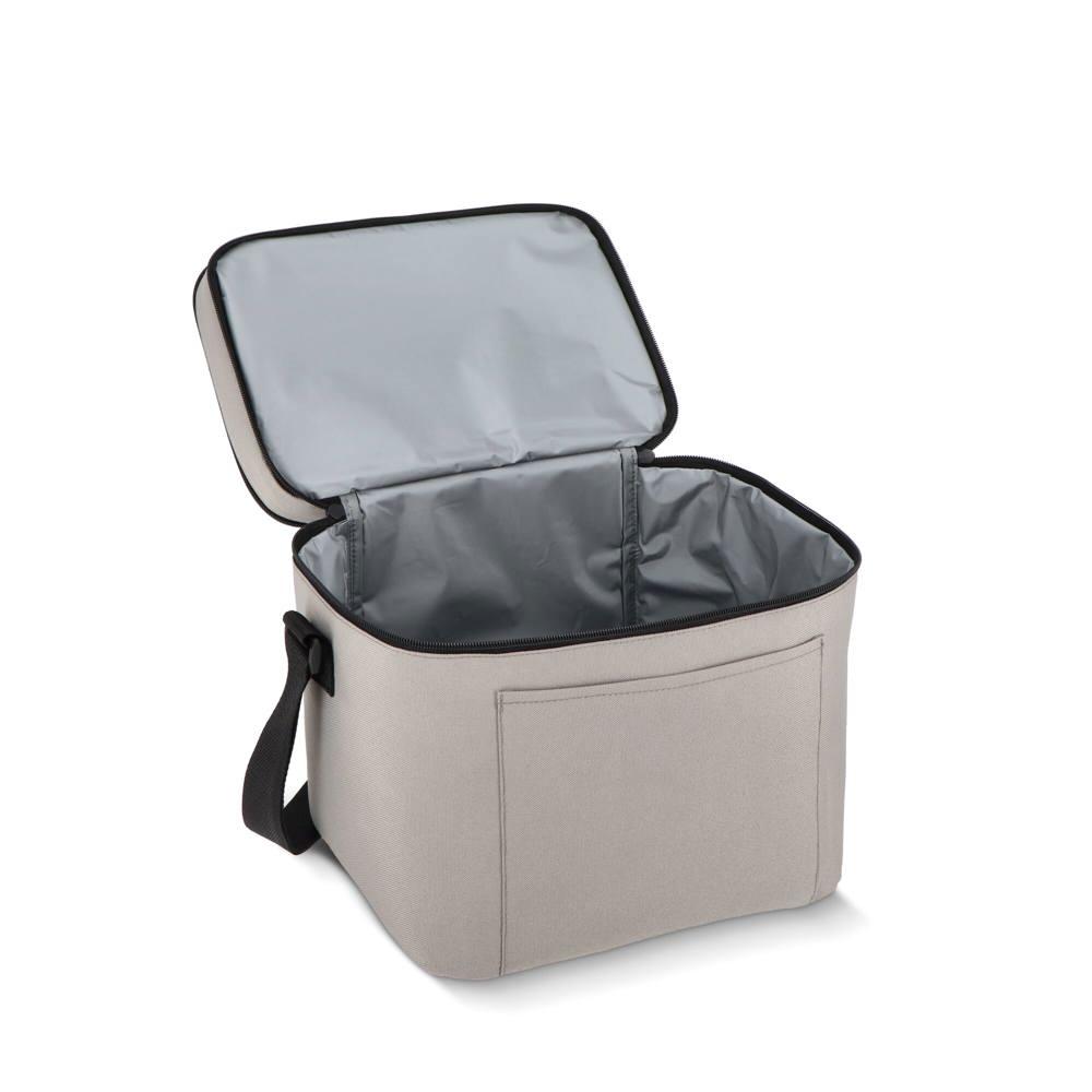 Koeltas van 600D gerecycled PET met een inhoud van 15L, voorzien van een groter ondervak en een kleiner bovenvak. Dankzij de isolerende PEVA-voering kun je warme en koude spullen gescheiden bewaren. De verstelbare schouderriem zorgt voor comfortabel dragen, ideaal voor onderweg.