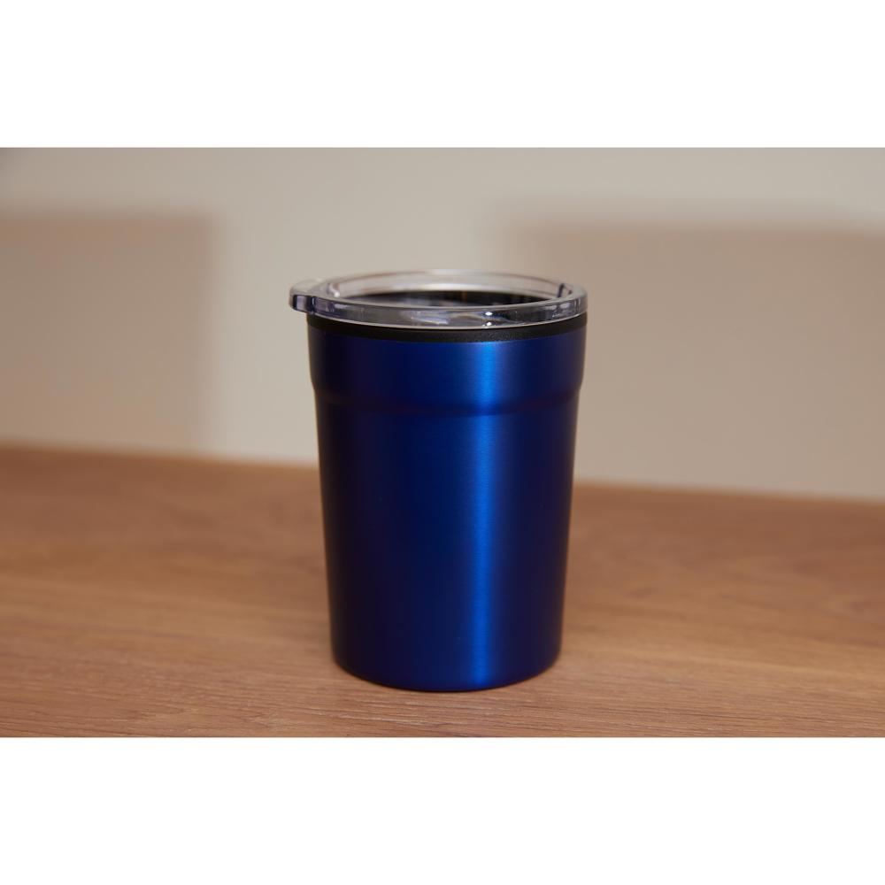Ontdek deze compacte koffiebeker die perfect past onder alle gangbare koffiemachines. Dankzij de dubbelwandige constructie met roestvrij stalen buitenkant blijft je espresso langer warm, zonder dat de beker heet wordt aan de buitenkant. Het kunststof deksel klikt stevig vast en heeft een praktische sluitschuif, zodat je zorgeloos onderweg bent zonder lekkage.