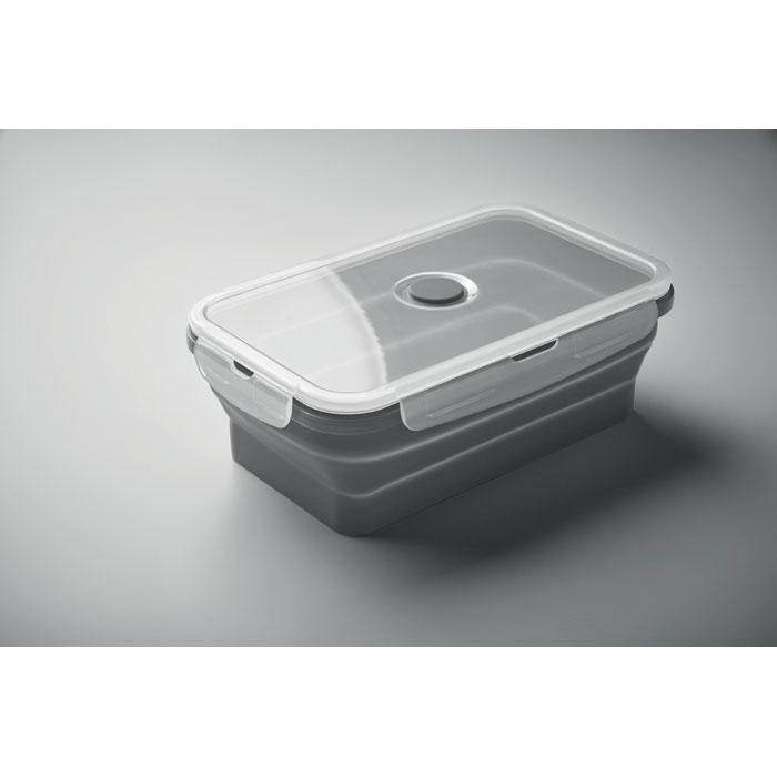 Inklapbare siliconen lunchbox met PP deksel en siliconen ventiel. Inhoud: 1200ml.