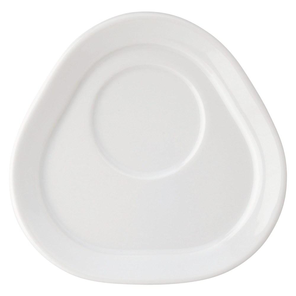 Kop en schotel van hoogwaardig porselein uit de 'Satellite' serie. Kop is stapelbaar en biedt een groot bedrukkingsoppervlakte. Het driehoekige schoteltje bied extra ruimte rondom het kopje. Geproduceerd in Europa.