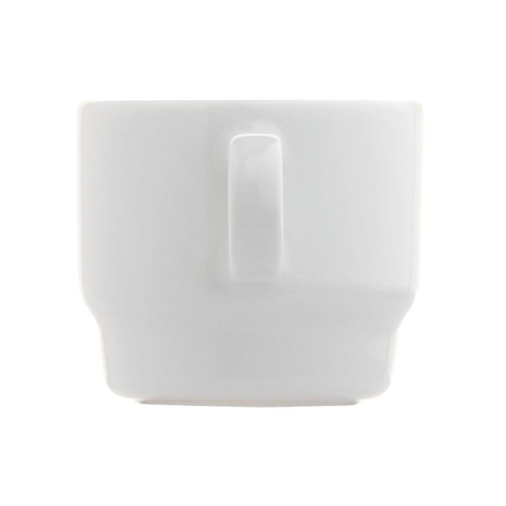 Kop en schotel van hoogwaardig porselein uit de 'Satellite' serie. Kop is stapelbaar en biedt een groot bedrukkingsoppervlakte. Het vierkante schoteltje bied extra ruimte rondom het kopje. Geproduceerd in Europa.