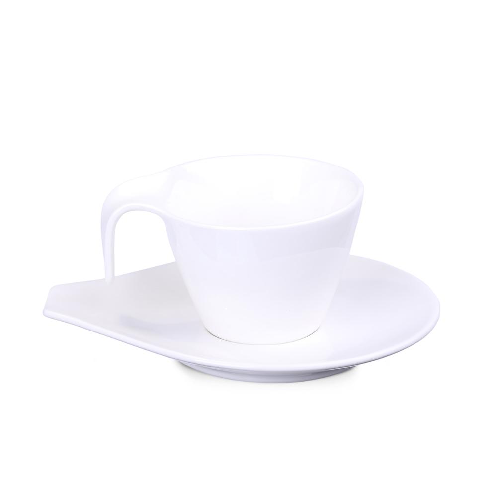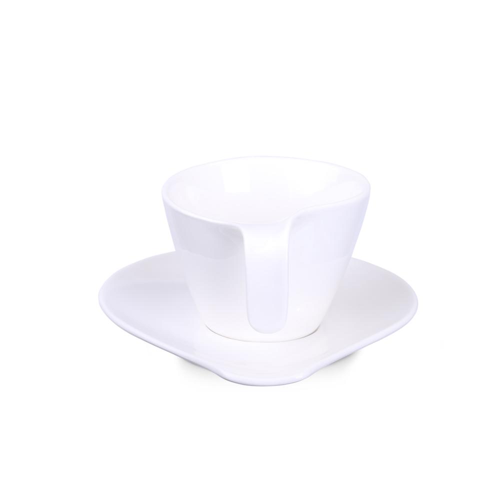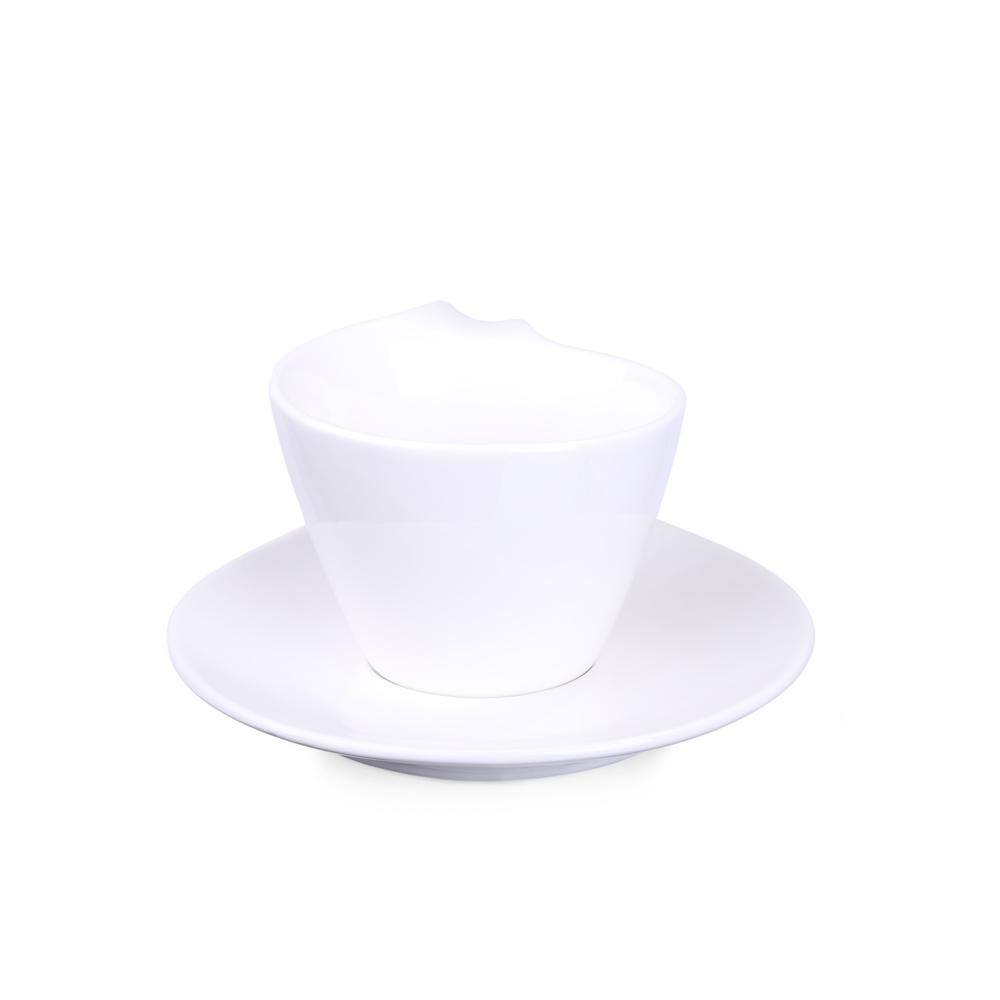 Dit unieke kopje van hoogwaardig porselein met bijpassend schoteltje is perfect als relatiegeschenk voor je events of marketingacties. Het fantasierijke oor zorgt voor een elegante grip, terwijl het schoteltje het dragen vergemakkelijkt en een professionele uitstraling geeft.