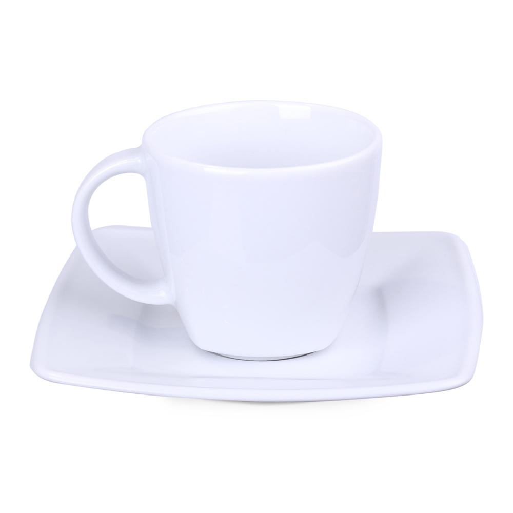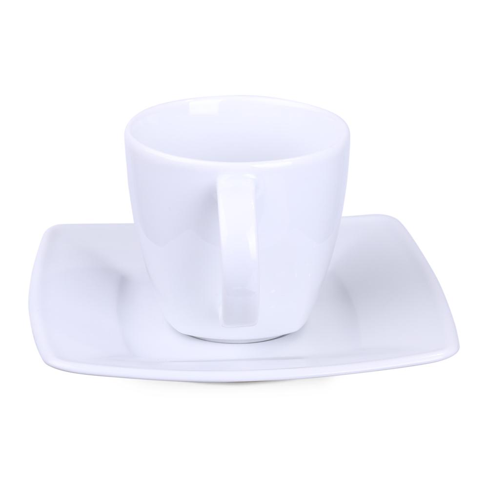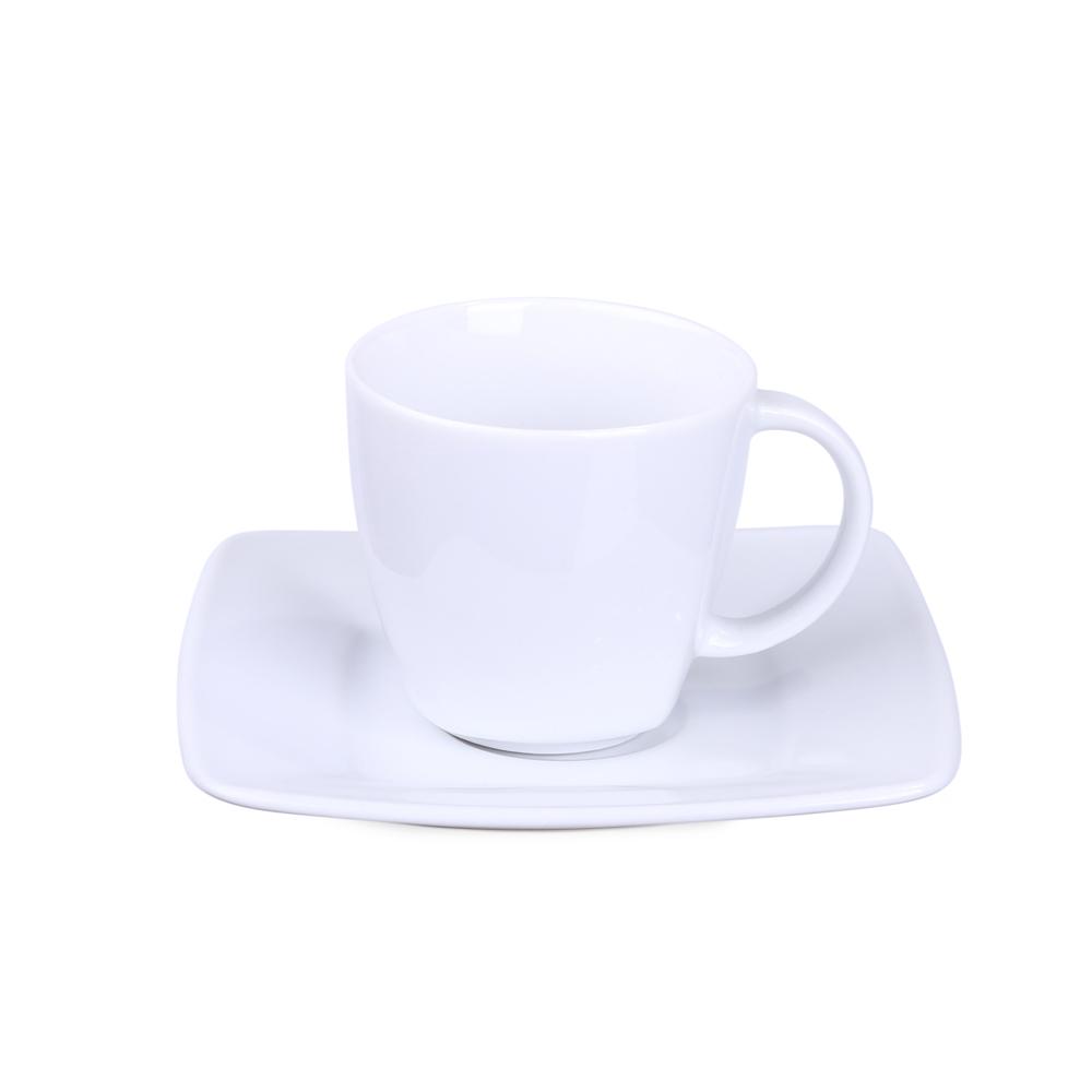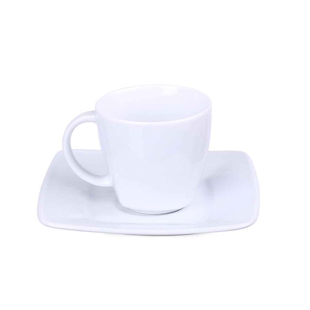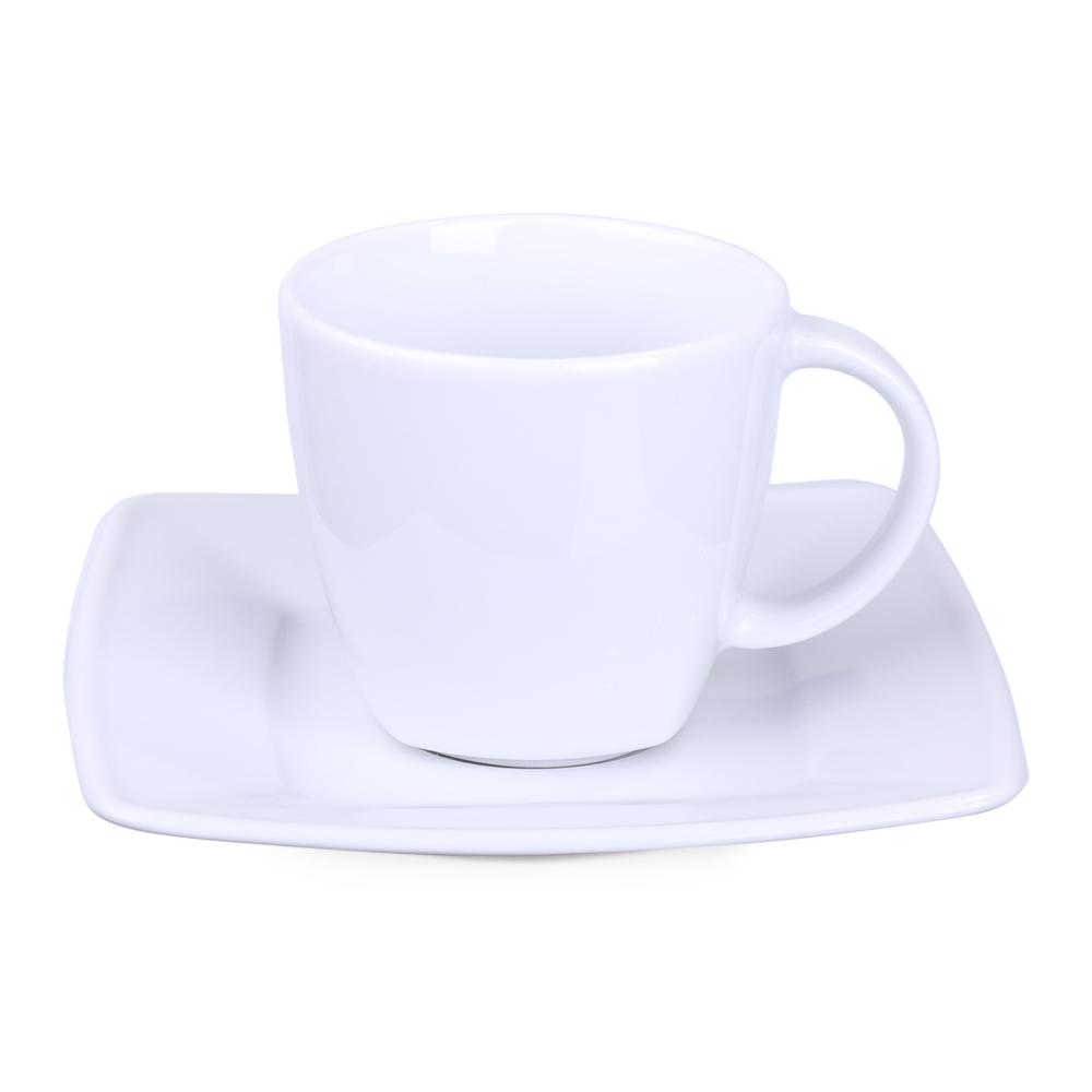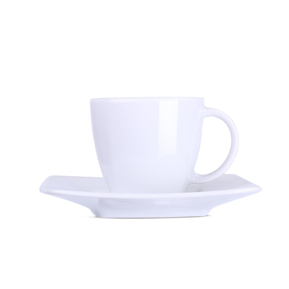 Ontdek dit elegante porseleinen kopje van 200 ml met bijpassend schoteltje. De delicate vierkante afwerking aan de onderkant maakt het uniek en geeft een verfijnde touch.