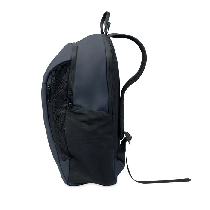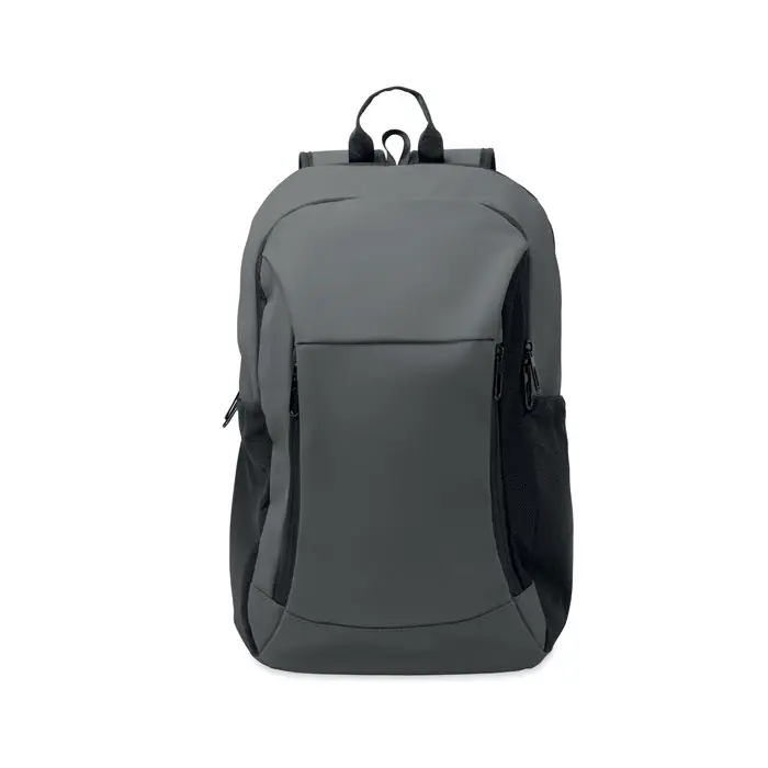 Ontdek onze hoogwaardige 15 inch laptoprugzak, vervaardigd uit zacht PU-materiaal. Deze rugzak biedt optimale bescherming voor uw laptop dankzij de gewatteerde achterkant en het verborgen hoofdvak met rits. U beschikt over praktische opbergmogelijkheden met één voorvak met rits, twee zijvakken met rits aan de voorkant en twee elastische mesh zijvakken. De voering bestaat uit 210D RPET voor extra duurzaamheid.