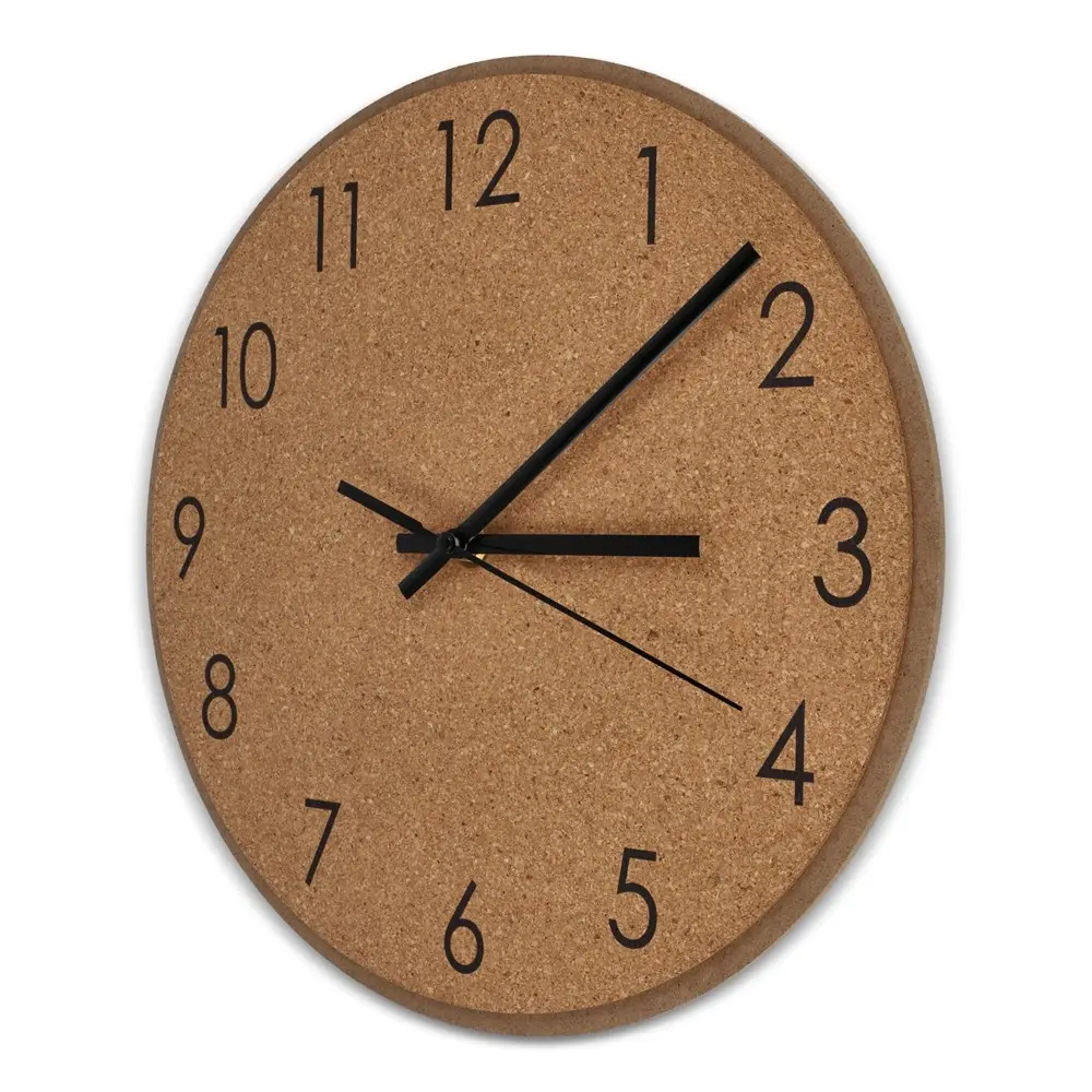 Als marketingprofessional of eventorganisator waardeert u de veelzijdigheid van deze wandklok. Personaliseer hem eenvoudig met uw logo via bedrukking, zodat uw merk zichtbaar blijft bij elke tik. De kurken constructie zorgt voor een warme, natuurlijke uitstraling die uitnodigt tot langdurig gebruik.