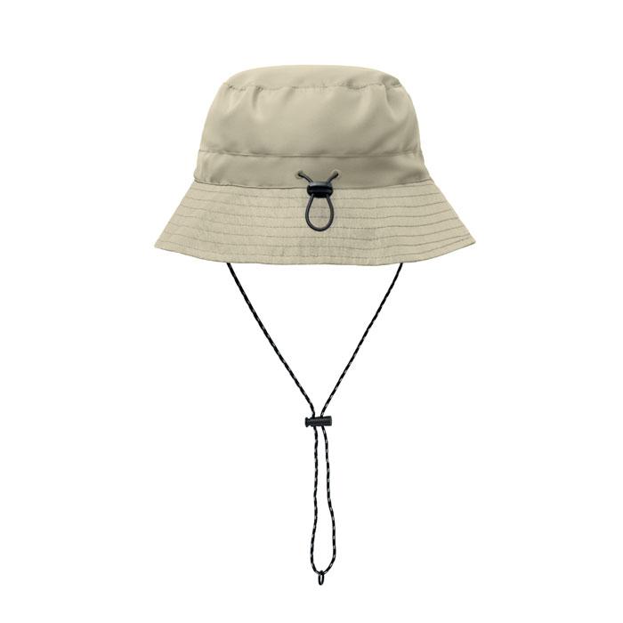 Ontdek dit praktische waterafstotende vissershoedje van polyester, perfect als gepersonaliseerd relatiegeschenk met jouw logo. Met een geïntegreerd zakje aan de binnenkant en stevige ABS-karabijnhaken bewaar je makkelijk sleutels of kleine spullen. Het lichte materiaal van 64 g/m² zorgt voor optimaal draagcomfort, ideaal voor outdoor events, vissen of promotieacties.